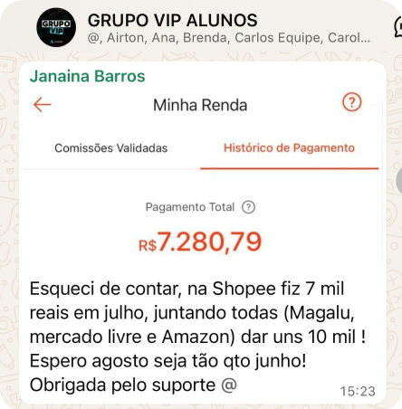 Já faturei mais de 3 milhões trabalhando como afiliado e hoje, minha missão é ajudar outras pessoas a conquistarem sua independência financeira começando do zero sendo uma pessoa comum como eu, independente de idade, lugar onde mora, sem precisar de seguidores, falar com clientes e ate mesmo ter estoque de produtos. Se eu consegui, saindo do zero, morando em uma cidade no interior do parana e com mil desafios, você também pode!